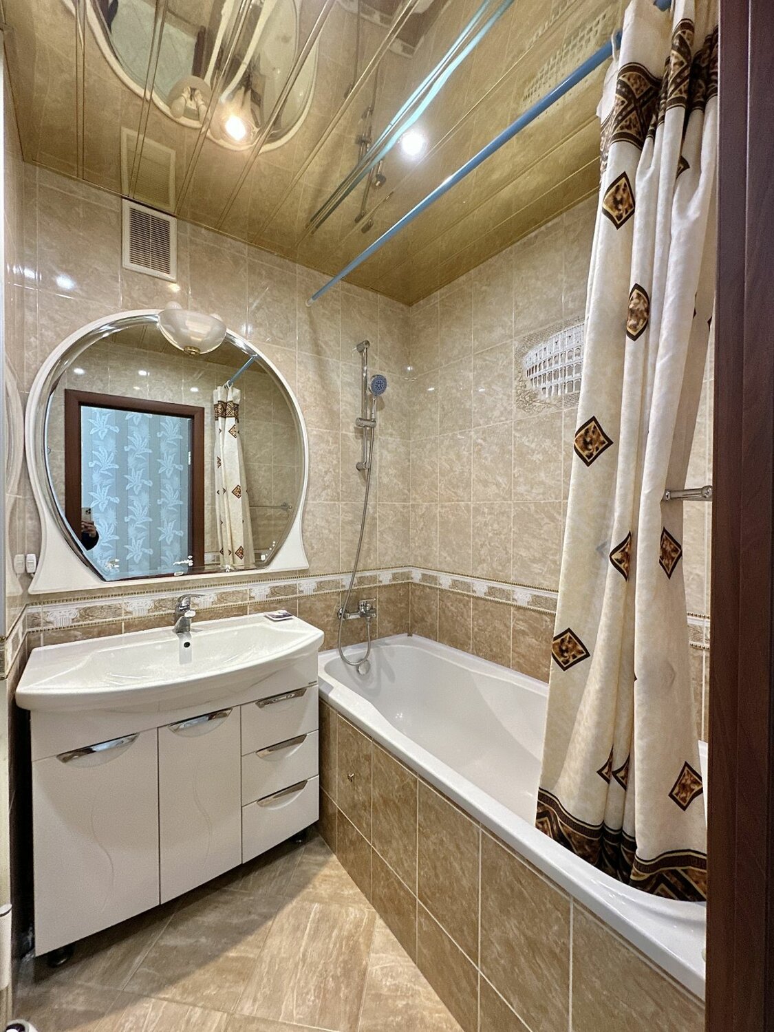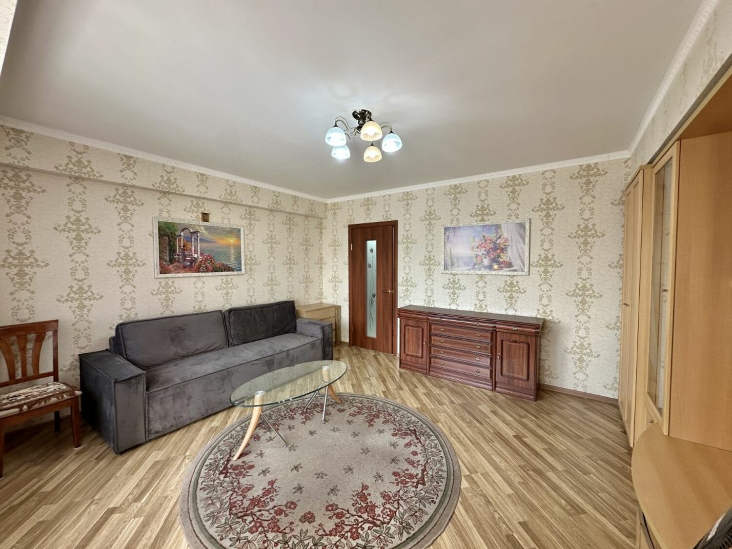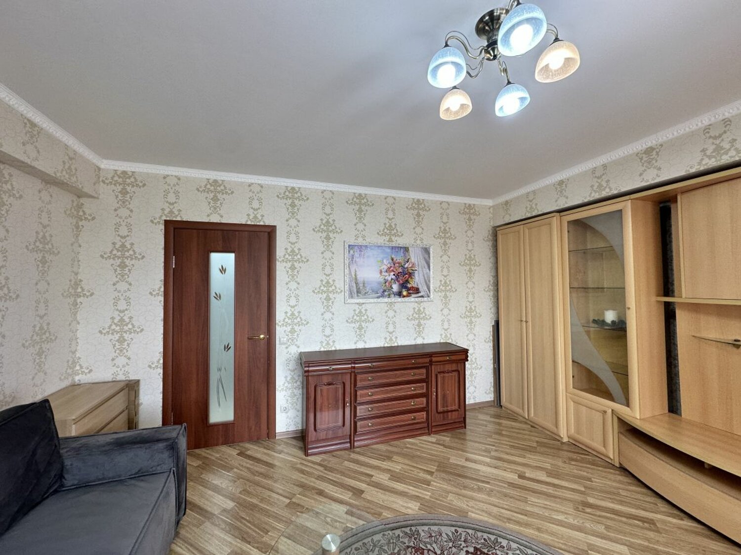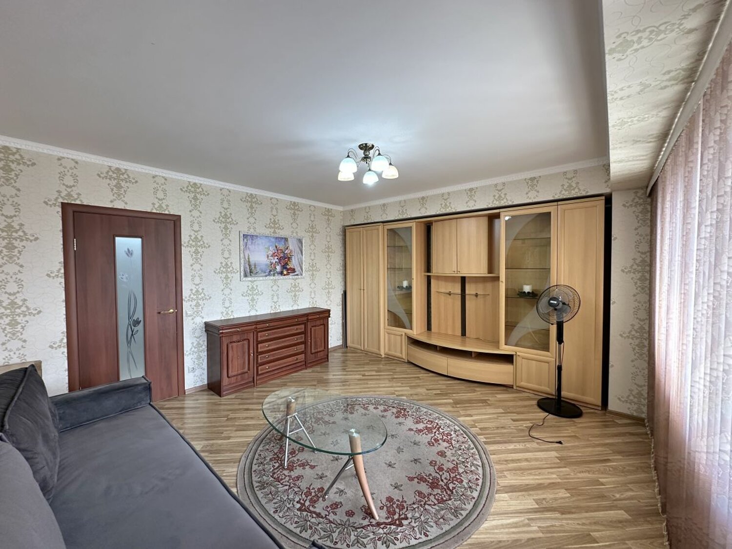 В коридоре большой встроенный шкаф зеркальный. Ламинат. Сан узел совмещен, в плитке. Стеклопакеты.