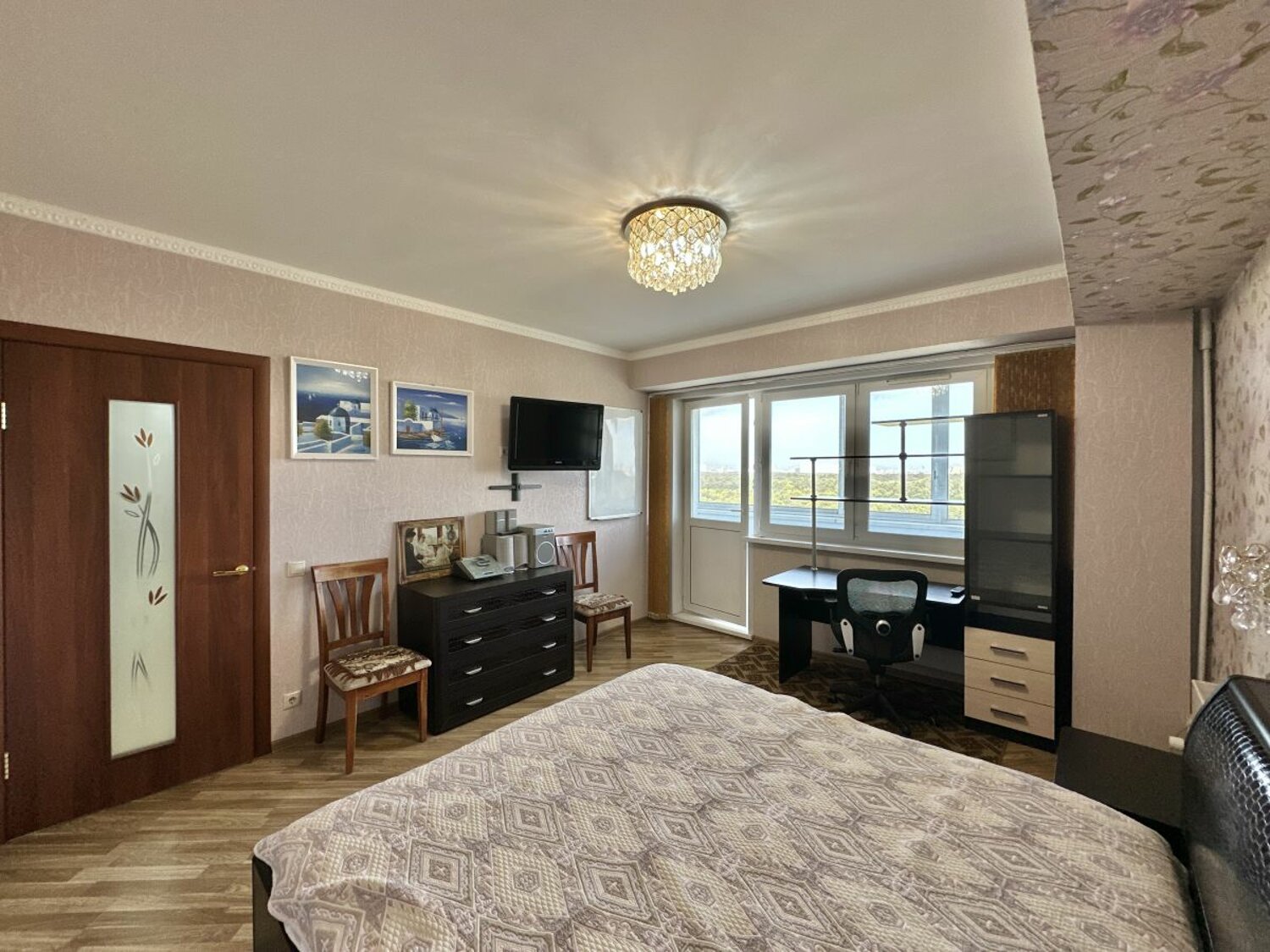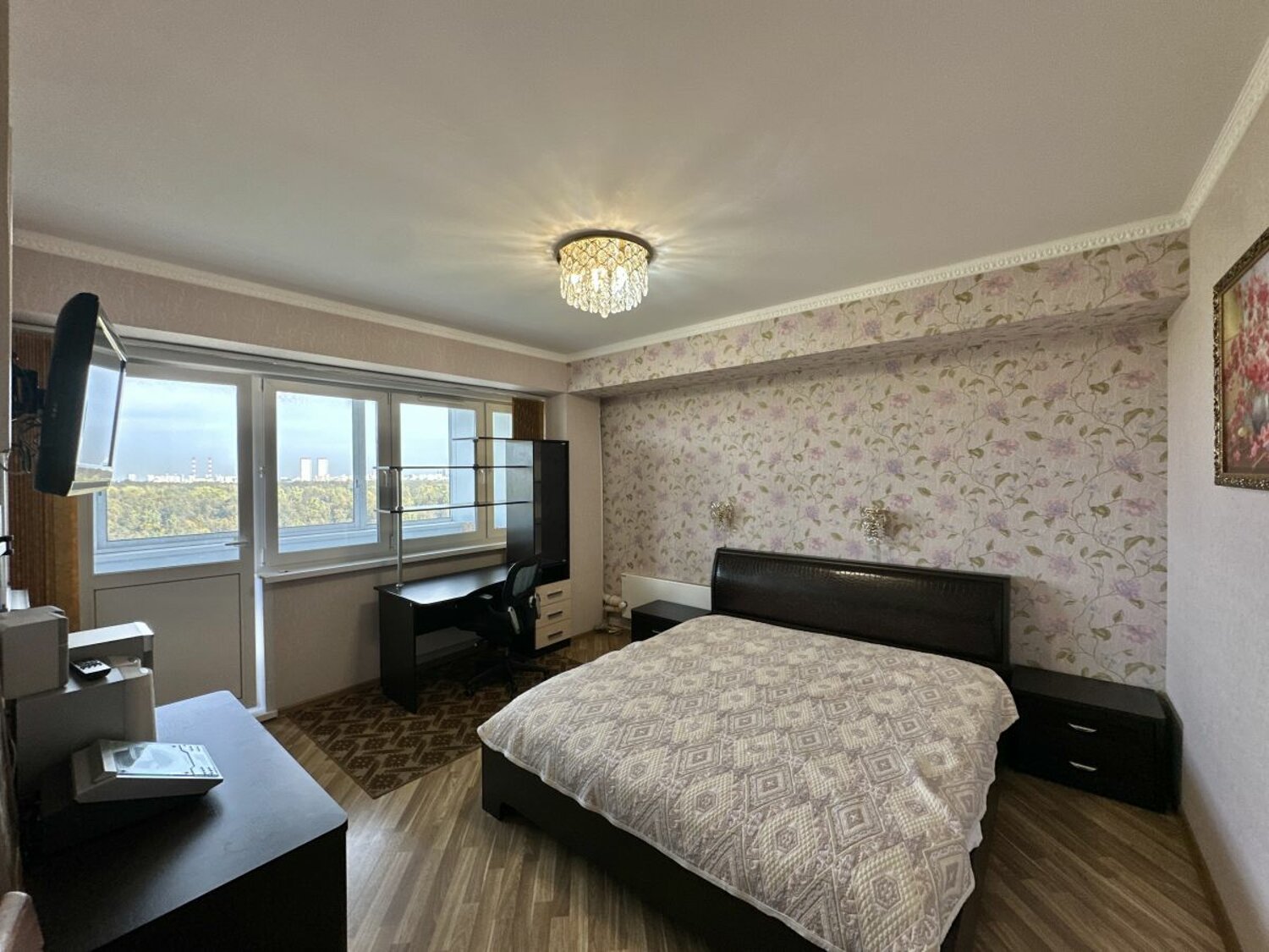 Огромная Застекленная лоджия (6 метров) вид из окон на Измайловский лесопарк. Имеется вся необходимая мебель(двуспальная кровать, диван, стол, стенка, шкаф, тумба, комод) для комфортного проживания и техника(стиральная машина, холодильник, тв, духовой шкаф, варочная панель) Кухонный гарнитур, со встроенной бытовой техникой.