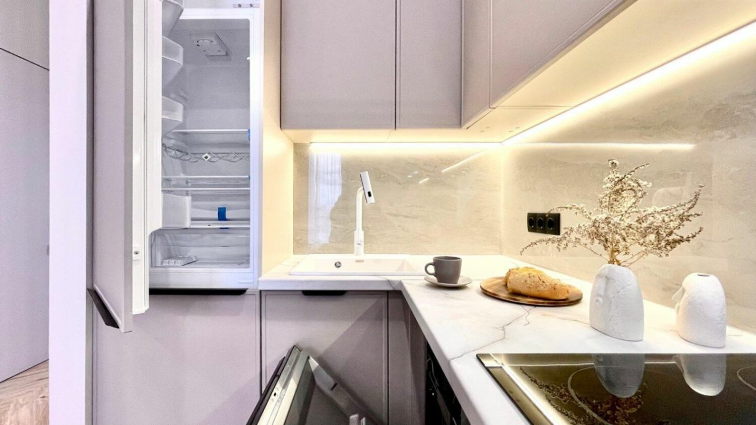 Мебель: мебель на кухне, телевизор, стиральная машина, посудомоечная машина, холодильник