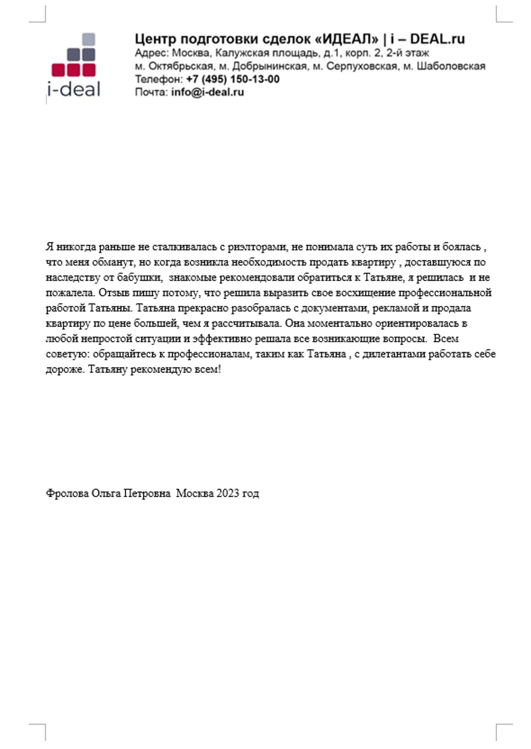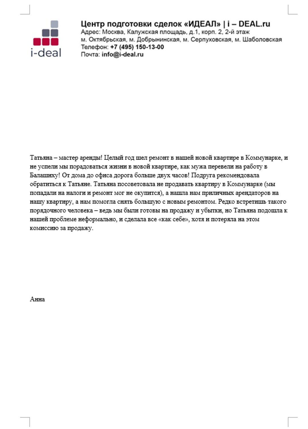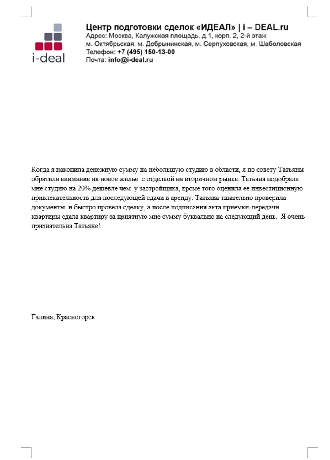 отказа от использования Сайтов i-deal.ru.
